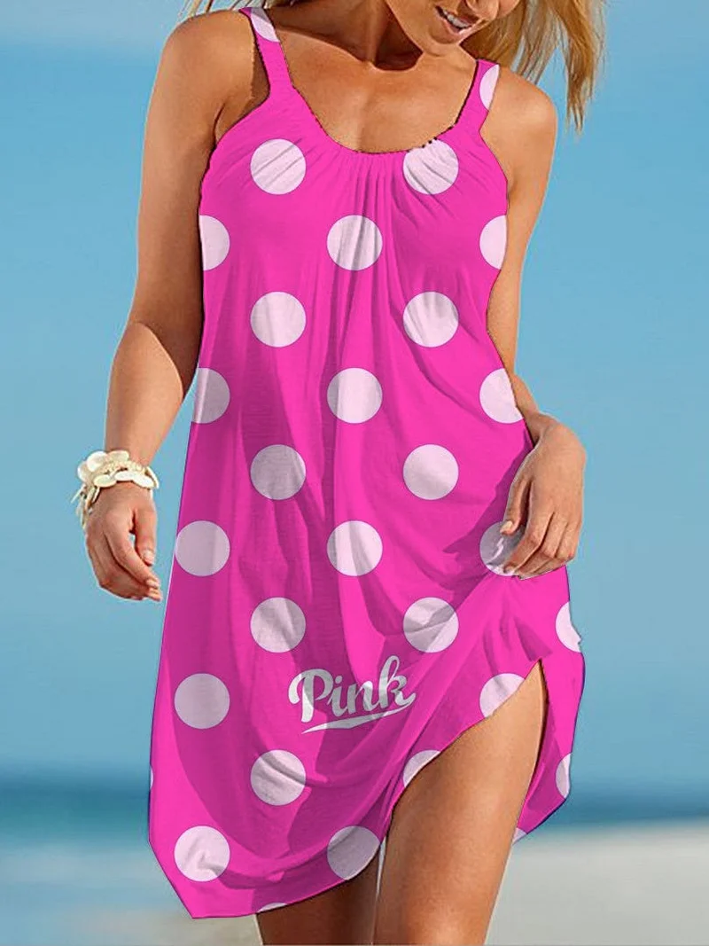 Pink Polka Dots Summer Beach Dress – bazzada Store