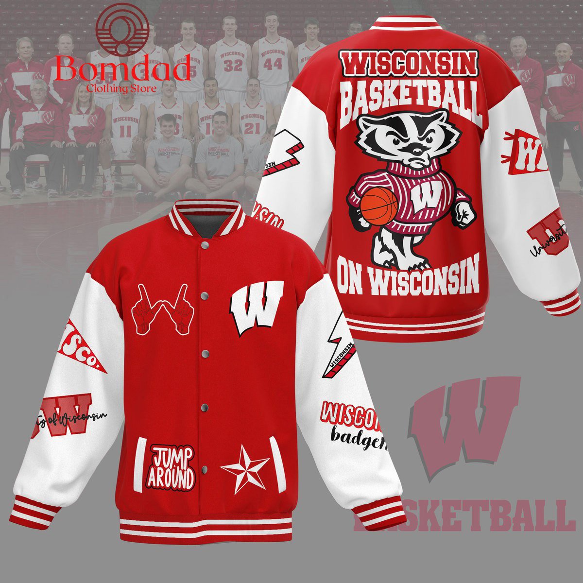 Wisconsin Badgers Basketball On Wisconsin Baseball Jacket – bazzada Store